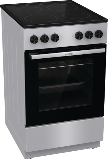 Električni štednjak energetske klase A u elegantnoj sivoj boji sa staklokeramičkom pločom i četiri zone kuhanja snage do 1700 W pruža pouzdanu i efikasnu pripremu obroka. Pećnica zapremine 68 l sa HomeMade oblikom i SilverMatte emajlom osigurava ravnomjerno pečenje, uz funkcije donjeg i gornjeg grijača te AquaClean sistem za lakše čišćenje. Opremljen je dvostrukim CompactDoor vratima, signalizacijom preostale toplote, unutrašnjim osvjetljenjem, dubokom emajliranom posudom i rešetkom, a uža širina od 50 cm čini ga idealnim rješenjem za manje kuhinje.
