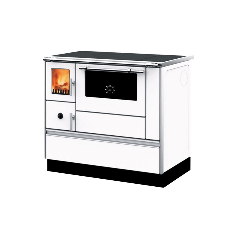 Štednjak na čvrsta goriva snage 10 kW namijenjen je za grijanje prostora i pripremu hrane u jednom uređaju. Poseduje čelične ploče za kuvanje sa mogućnošću skidanja radi temeljitog čišćenja, a kuvanje je moguće na cijeloj površini plotne. Rerna dimenzija 46 × 26 × 44 cm omogućava ravnomjerno pečenje, uz duplo staklo i ugrađen termometar za bolju kontrolu temperature. Ložište je obloženo šamotnim pločama koje akumuliraju toplotu i poboljšavaju sagorijevanje, dok staklo na vratima pruža pogled na plamen. Regulator primarnog vazduha nalazi se na vratima pepeljare, a višestruki priključak na dimnjak (bočno, odozgo ili pozadi) olakšava montažu. Dodatne pogodnosti uključuju fioku za gorivo, otvor za čišćenje i dva položaja vrata rerne za regulaciju emitovanja toplote. Dimenzije štednjaka su 90 × 85 × 60 cm.